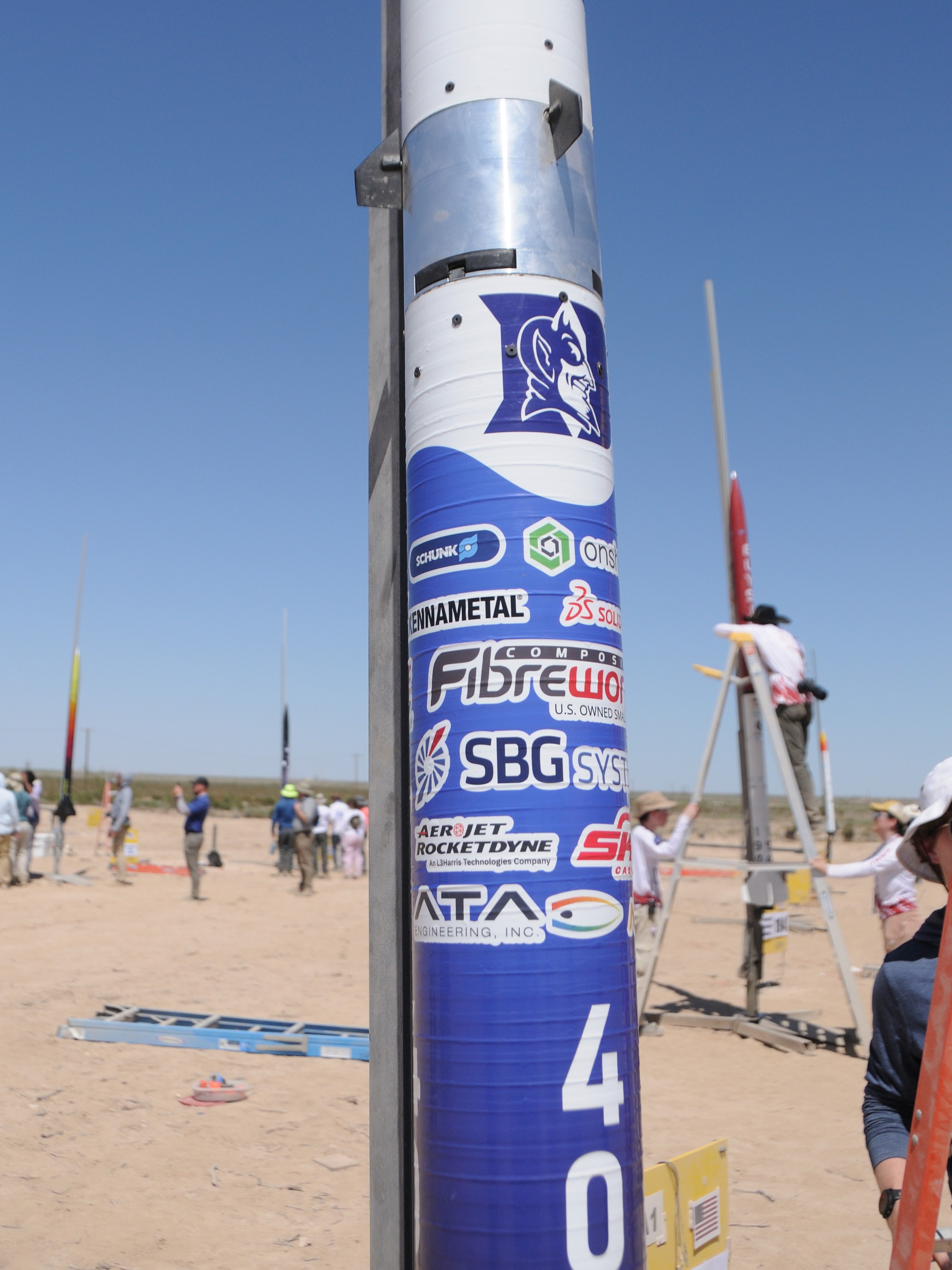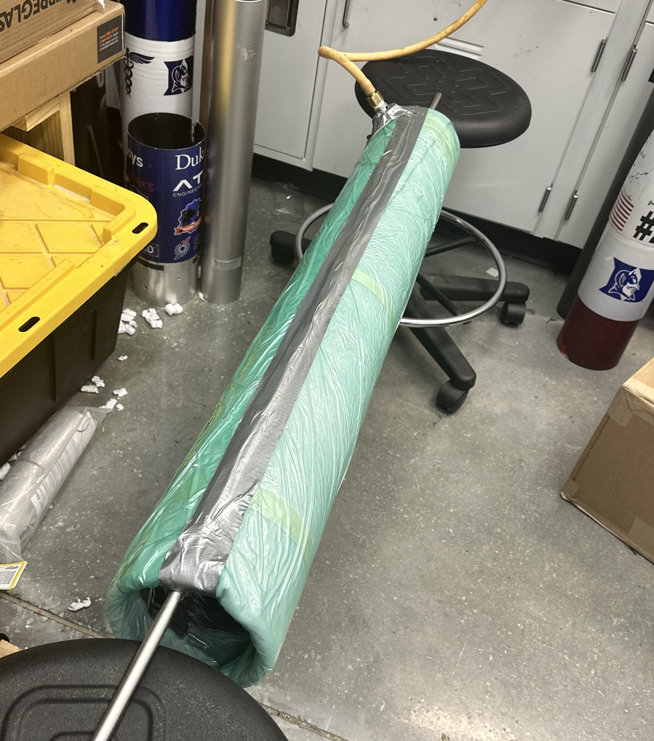 As part of the Solid Propulsion subteam, I worked to develop a 6” O-class solid rocket motor capable of producing 35,000 Ns of impulse and 5000 N of thrust for a 30,000 ft target altitude. Using a propellant formula developed by a previous Duke AERO team, I mixed and cast solid propellant grains and integrated them into the motor case. Extensive testing was conducted to verify the motor’s structural integrity and performance. I assisted with hydrostatic testing up to 1350 psi and helped the team prepare for a static hot fire.Competition