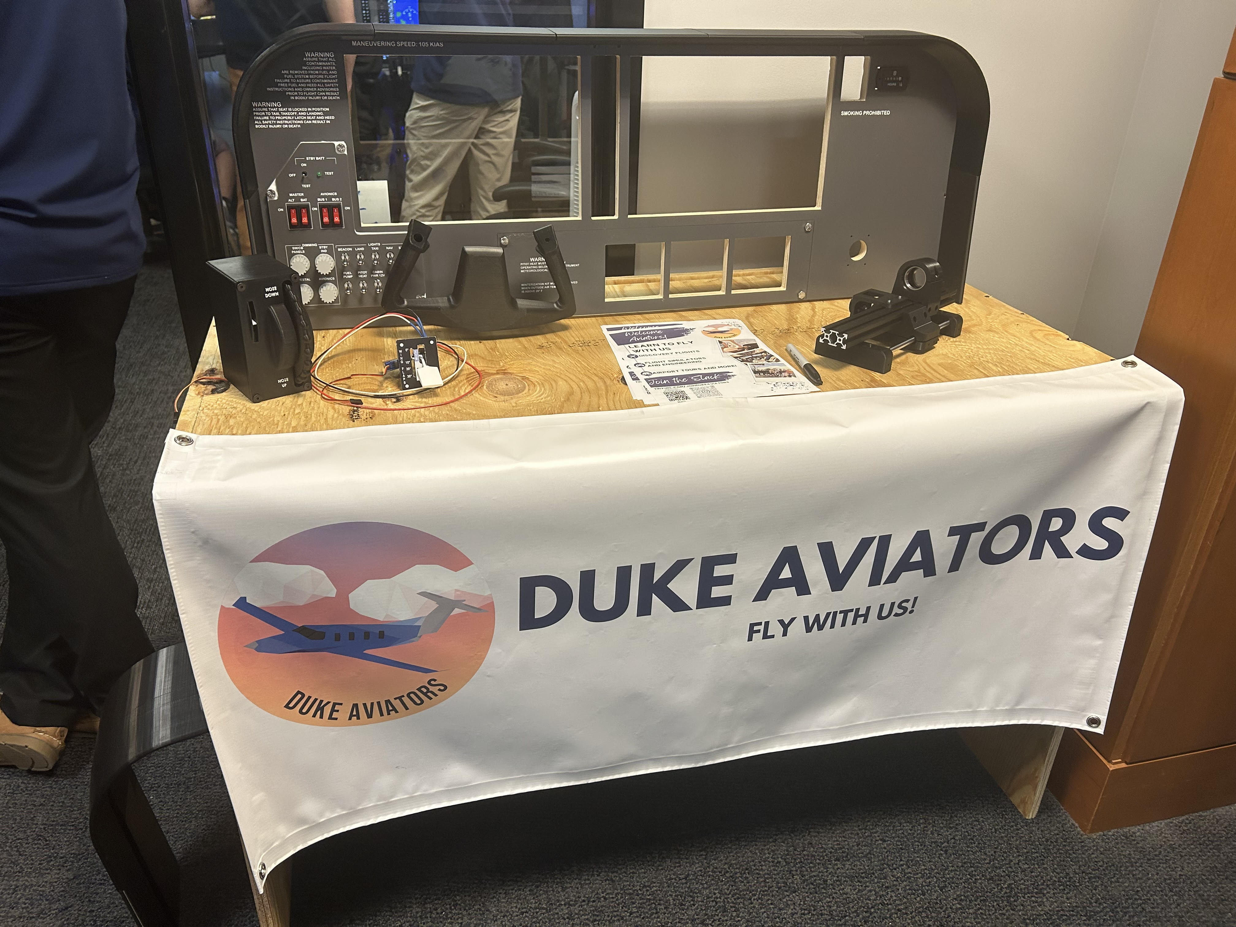 Duke Aviators is an aviation interest organization where students can learn how to obtain a private pilot’s license. With a team of a few other students, I developed the club’s in-house flight simulator, aiming to create a to-scale, fully functional Cessna 172 dashboard. I worked to design and build a custom wooden frame to support the dashboard. I also engineered a flaps panel using 3D-printed components and Arduino electronics by following an online tutorial, and integrated this flight control with the Microsoft Flight Simulator software. Creating an immersive flight experience and giving students the tools to practice flying has been a highly rewarding experience.